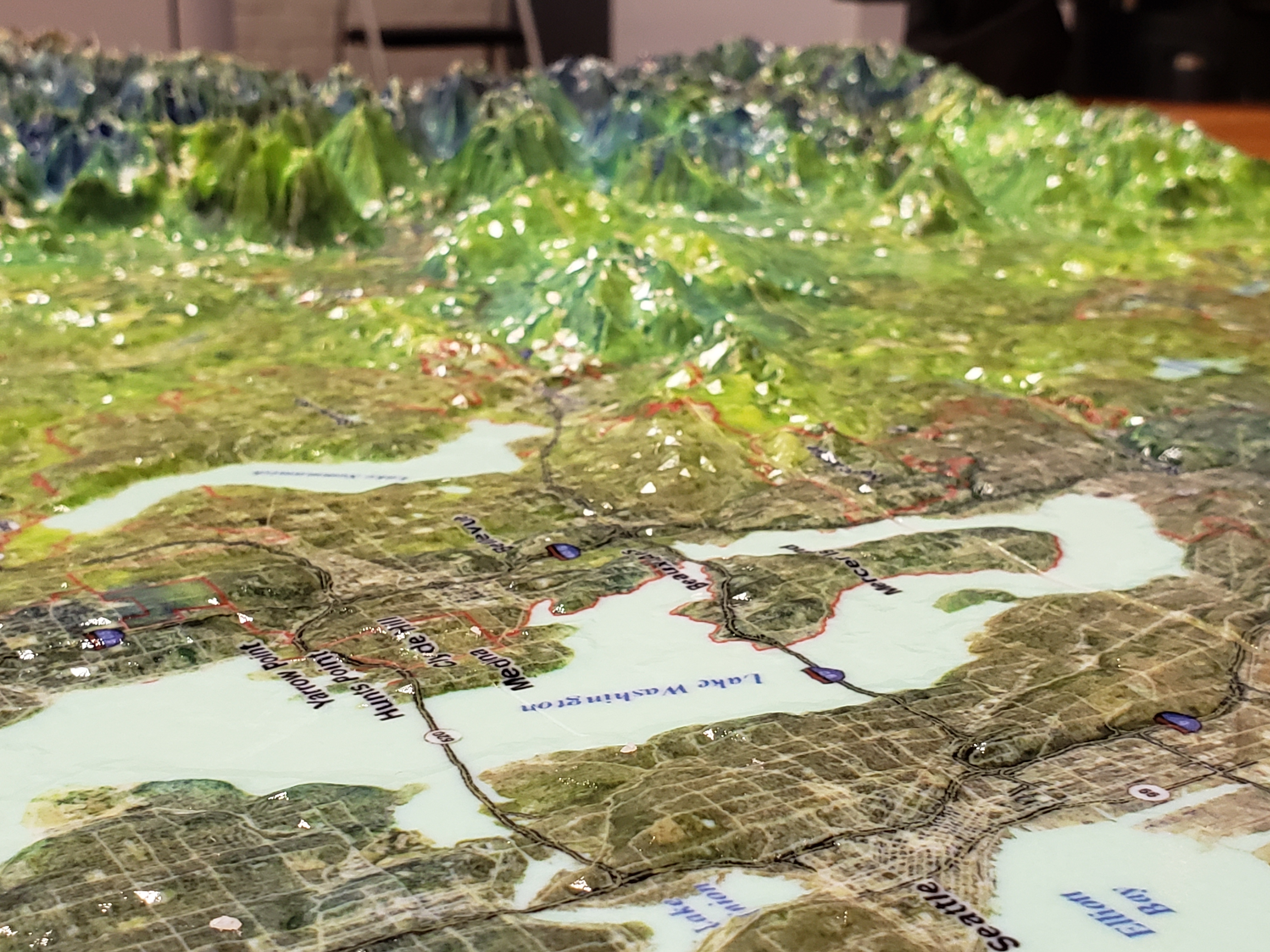 Editor’s Note: GIS & You is publishing two companion articles describing a project to create a physical 3D model of King County. Each article is written from the perspective of one of the two analysts who worked through the process to make the model a reality. Please see the accompanying article titled “Converting digital terrain data into a 3D printed model of King County” for a more complete picture of this complex effort.