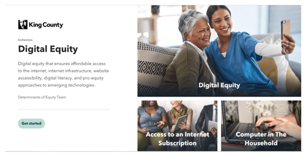 PSB, in conjunction with OERSJ, determined that a web page managed by OERSJ is the best entry point for anyone interested in equity issues in King County. This site contains links to 15 Story Map Collections that house 64 StoryMaps, 91 data sets (hosted feature services), 262 Dashboards, and 47 Instant Apps. Additionally, 41 Notebooks were developed to automate data development. The website includes additional links to a user guide, determinants of equity data methodology, and summaries of community engagement.