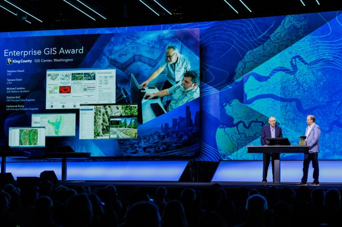 At the Esri CIO Summit, King County CIO Stephen Heard and CTO Tamara Davis accepted the Enterprise GIS Award on behalf of the county. The award acknowledges organizations that have successfully implemented enterprise-wide GIS strategies that deliver measurable value, foster collaboration, and elevate public service.